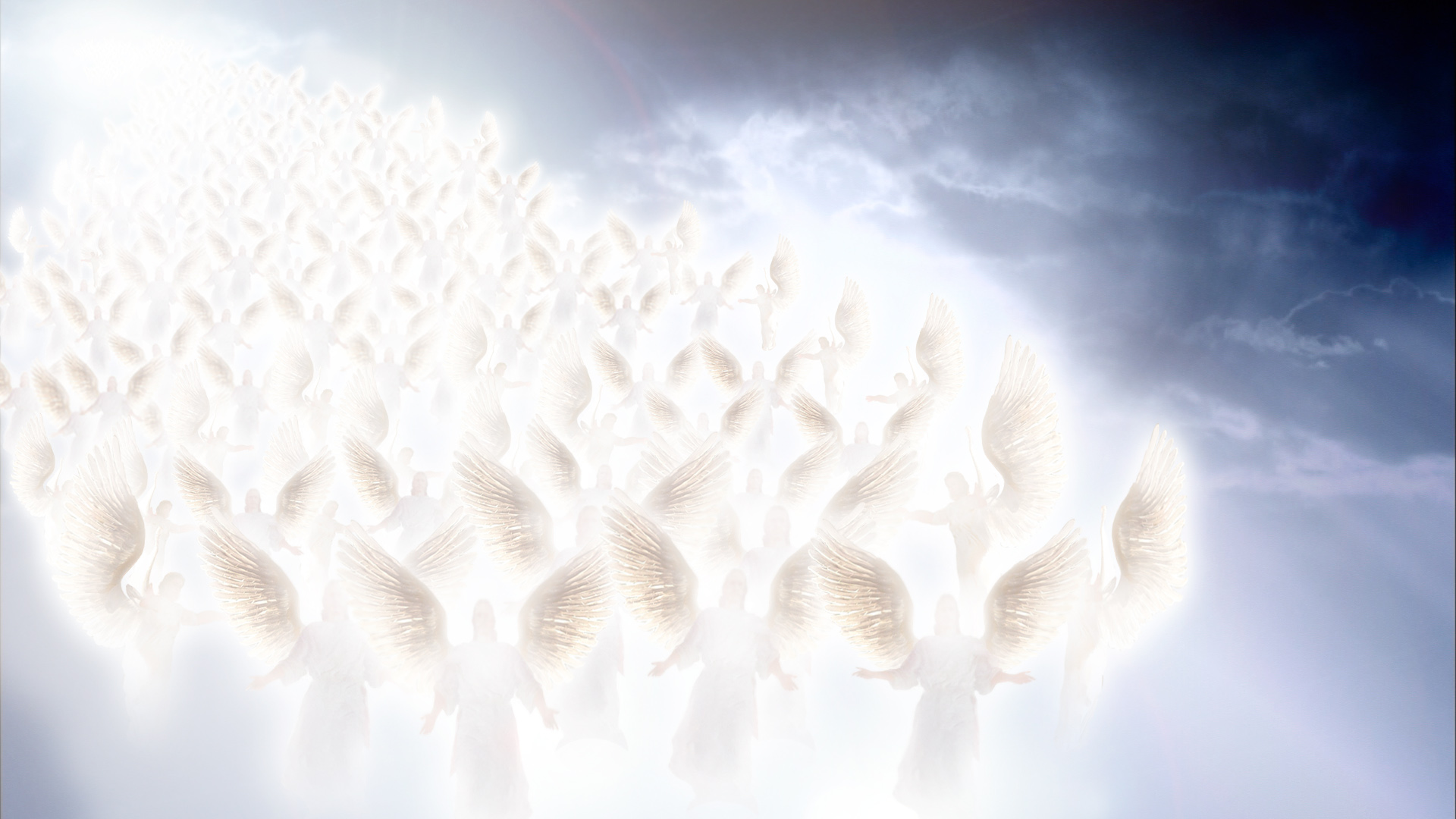 Tout à coup, une nuée d’anges apparut, louant Dieu et disant: « Gloire à Dieu au plus haut des cieux et paix sur la terre aux hommes qu’il agrée. »