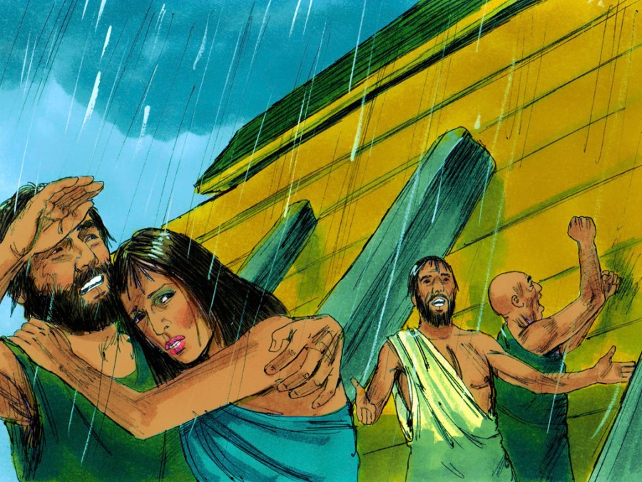 Dieu ferma ensuite la porte de l’arche et la pluie commença à tomber. Il plut pendant 40 jours; les rivières sortirent de leur lit, et la crue monta de plus en plus haut.
