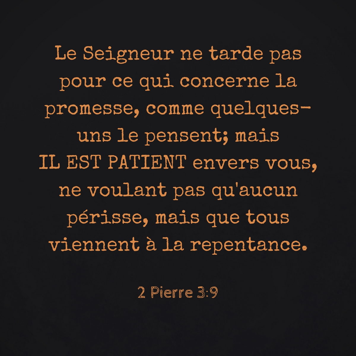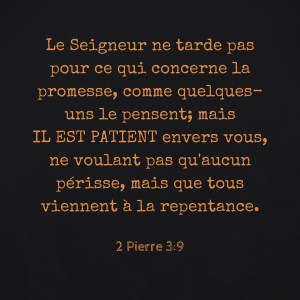 Du temps des apôtres, certaines personnes estimaient déjà qu’il y avait du retard dans l’accomplissement des promesses du Seigneur. Non, répond l’apôtre Pierre, c’est que Dieu “est patient envers vous, ne voulant pas qu’aucun périsse” (2 Pierre 3. 9).