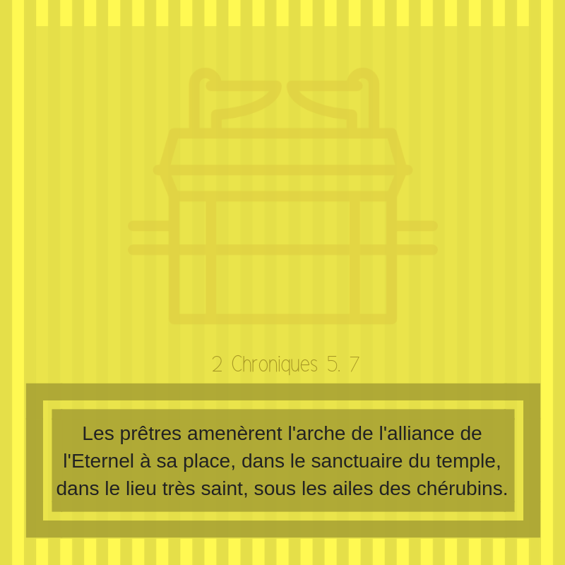 Trois mois plus tard, David comprend que l’arche doit être portée par les lévites ; il confesse la faute commise et organise un nouveau transfert. Cette fois-ci, les instructions que Moïse avait données de la part de l’Éternel sont soigneusement respectées (1 Chroniques 15. 13, 15). L’Éternel peut alors aider les lévites qui portent l’arche (verset du jour). Elle arrive sans autre incident à Jérusalem, accompagnée de la joie du peuple.