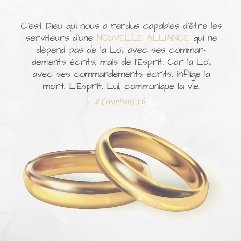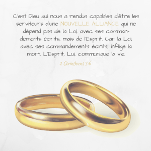 C’est pourquoi Jésus-Christ est le “médiateur de (la) nouvelle alliance” (Hébreux 9. 15). Tous ceux qui font confiance à Dieu se trouvent alors placés par Lui au bénéfice de cette nouvelle alliance. Elle les fait entrer éternellement dans la faveur de Dieu qui devient leur Père. Puisque nous sommes ses enfants, Dieu nous a donné son Esprit par lequel nous Lui disons maintenant, avec respect et confiance, « Papa ». Gloire à Dieu ! Par le même Esprit, nous nous laissons gouverner dans notre vie quotidienne. Il y manifeste alors la vie éternelle, la vie qui est auprès du Père, le reflet même de Jésus- Christ. Quelle alliance, quelles relations !