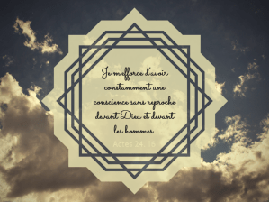 “Quand ceux des nations, sans avoir de loi, font naturellement ce que la Loi ordonne, ils sont loi à eux-mêmes, sans avoir de loi, et ils montrent, écrite dans leurs coeurs, l’oeuvre de la Loi, leur conscience rendant en même temps témoignage, et leurs pensées s’accusant entre elles ou bien se disculpant”. Romains 2. 14, 15