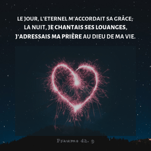 - La louange : “Eux, après lui avoir rendu hommage, s’en retournèrent à Jérusalem avec une grande joie. Et ils étaient continuellement dans le temple, louant et bénissant Dieu” (Luc 24. 52, 53). La louange et l’adoration devraient toujours caractériser le chrétien. Si je suis conscient de la grâce de Dieu envers moi, de son amour qui a donné Jésus (2 Corinthiens 9. 15), de sa fidélité qui me suit jour après jour, je ne peux que le louer.