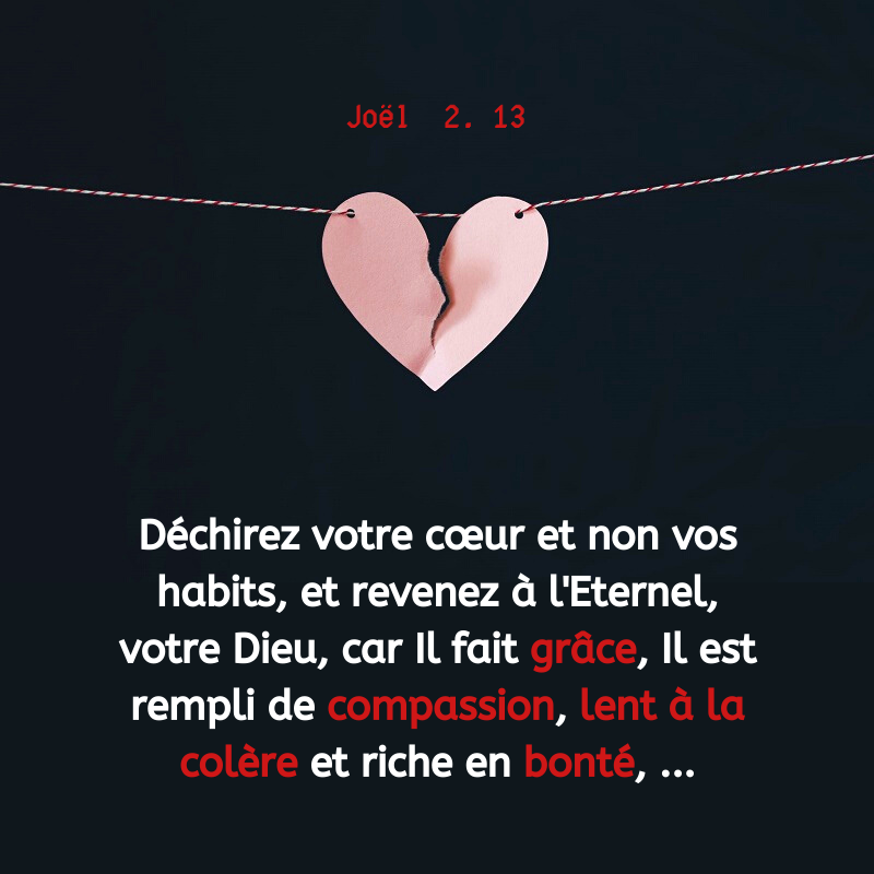 - […] Toi, Tu es un Dieu qui pardonne, un Dieu compatissant et qui fait grâce, Tu es lent à te mettre en colère et d’une immense bonté […]. Néhémie 9 : 17