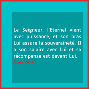Nos relations avec Dieu sont établies sur le principe de la grâce seule. “C’est par la grâce que vous êtes sauvés, par le moyen de la foi, et cela ne vient pas de vous, c’est le don de Dieu” (Ephésiens 2. 8). Mais Dieu ajoute quelque chose à ce don du salut : il promet une récompense à ceux qui le recherchent !