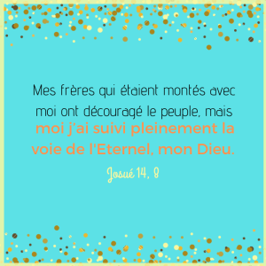 Si aujourd’hui tu es découragé de ne pas obtenir plus vite des victoires dans un ou plusieurs domaines de ta vie, je t’encourage à garder confiance en Dieu. Demande lui de la patience et rappelle-toi qu’il est bon, aimant et qu’il sait tout. Peut-être utilise-t-il ce temps pour te faire grandir et te préparer à prendre pleinement possession de ses promesses.