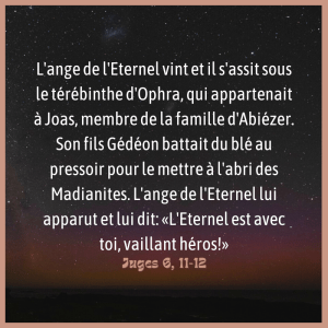 Cette interrogation n’attire pas de reproches de la part de l’Éternel. Au contraire, l’Éternel regarde Gédéon et lui dit : “Va avec cette force que tu as, et tu sauveras Israël de la main de Madian. Ne t’ai-je pas envoyé ?” (v. 14). Il ajoute : “Moi Je serai avec toi ; et tu frapperas Madian comme un seul homme” (v. 16). L’Éternel Lui-même se porte garant de la victoire !