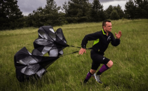 En course à pied, ces parachutes d’entraînement sont utilisés pour amener de la résistance afin de travailler sur le renforcement.