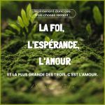 DIMANCHE 15 MARS | 1 Corinthiens 13,13 « Maintenant donc, ces trois choses restent : la foi, l‘espérance et l‘amour ; mais la plus grande des trois, c‘est l‘amour. » C‘est un accord parfait grandiose. Trois vertus sur lesquelles, en tant qu‘humain, nous échouons sans cesse. Nous manquons de foi, nous sombrons dans le désespoir, et lorsqu‘il s‘agit d‘aimer, nous assurons souvent le service minimum. Dieu est la source de tout : il fait grandir la foi, donne l‘espérance et nous rend capables d‘aimer.