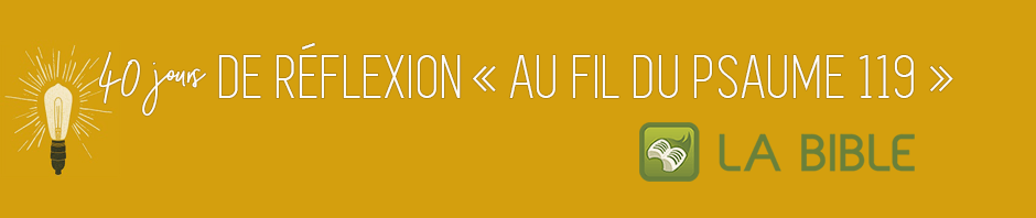 Par des impulsions quotidiennes tirées du Psaume 119, nous t’invitons à placer tout à nouveau Dieu et sa Parole au centre de ta vie. Une grande bénédiction repose sur la lecture, la méditation et la mise en pratique de la Parole de Dieu. Martin Luther a intitulé ce psaume : « L’abécédaire d’or. » En effet, ce psaume comporte 22 strophes correspondant aux 22 lettres de l’alphabet hébreu et les 8 versets de chaque strophe commencent chacun par une même lettre de cet alphabet (mentionnée en italique en regard de la strophe).