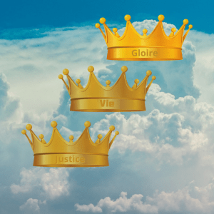 – La couronne de justice : “J’ai combattu le bon combat, j’ai terminé la course, j’ai gardé la foi. Désormais, la couronne de justice m’est réservée. Le Seigneur, le juste juge, me la remettra le jour du jugement, et non seulement à moi, mais aussi à tous ceux qui auront attendu avec amour sa venue.” 2 Timothée 4.7-8